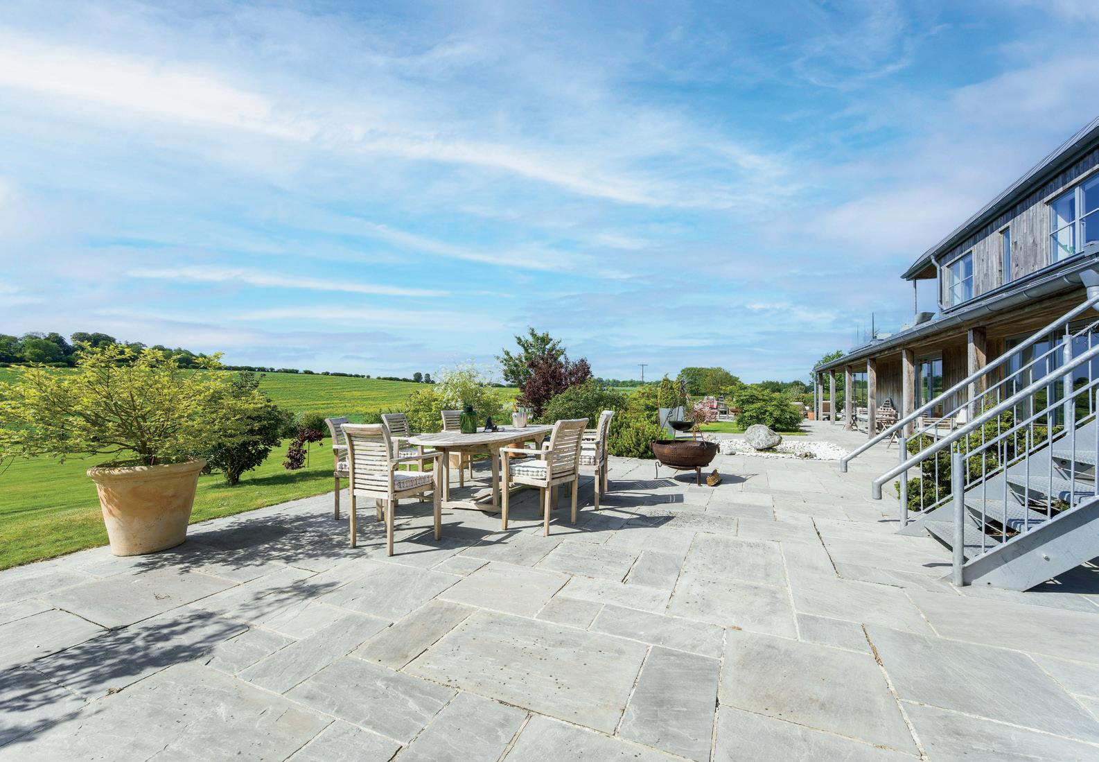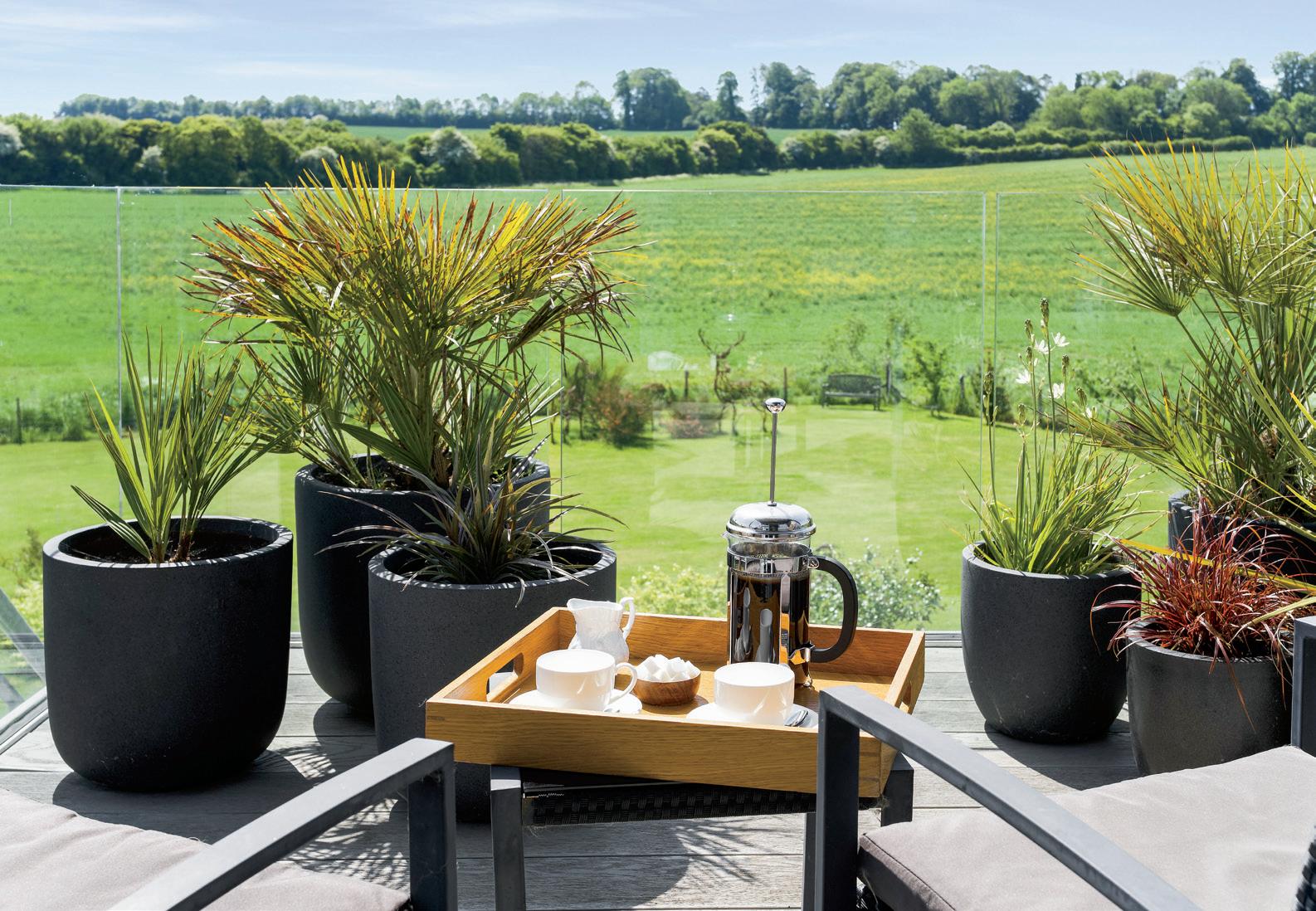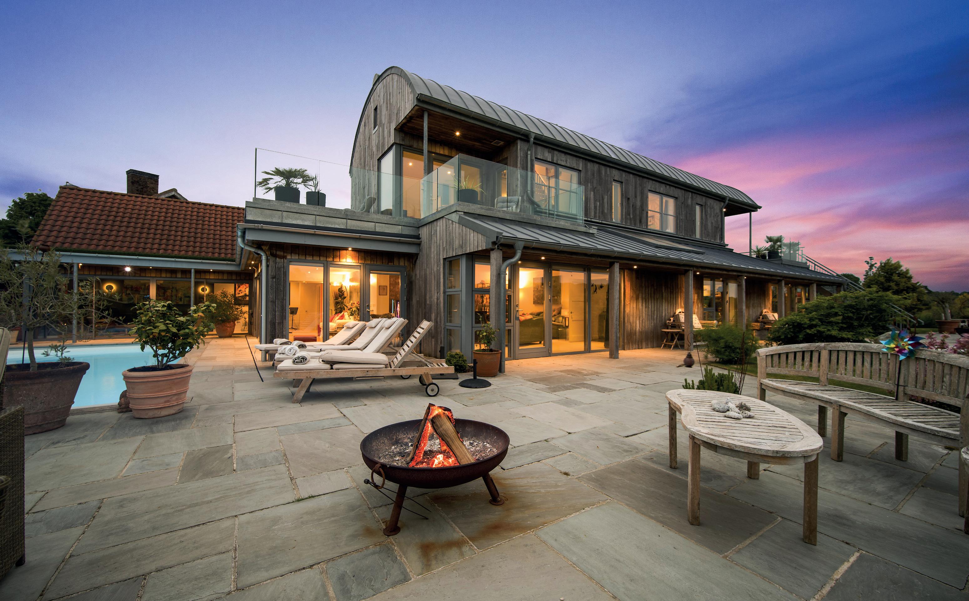 We were initially drawn to Hunton Down Barn for the breathtaking views, the sense of space and the quietness the property affords,” say the current owners of this exquisite modern property with far reaching vistas across farmland. “The balconies from all the bedrooms overlook the rear garden and surrounding fields, while at ground level, terraces wrap around the house so that no matter where the sun is coming from or the wind, there is always a sheltered spot from which to enjoy the great outdoors. In the morning, the sun shines into the kitchen from the east, then follows you around the house throughout the day, right up until the stunning sunset in the west on the terrace.”