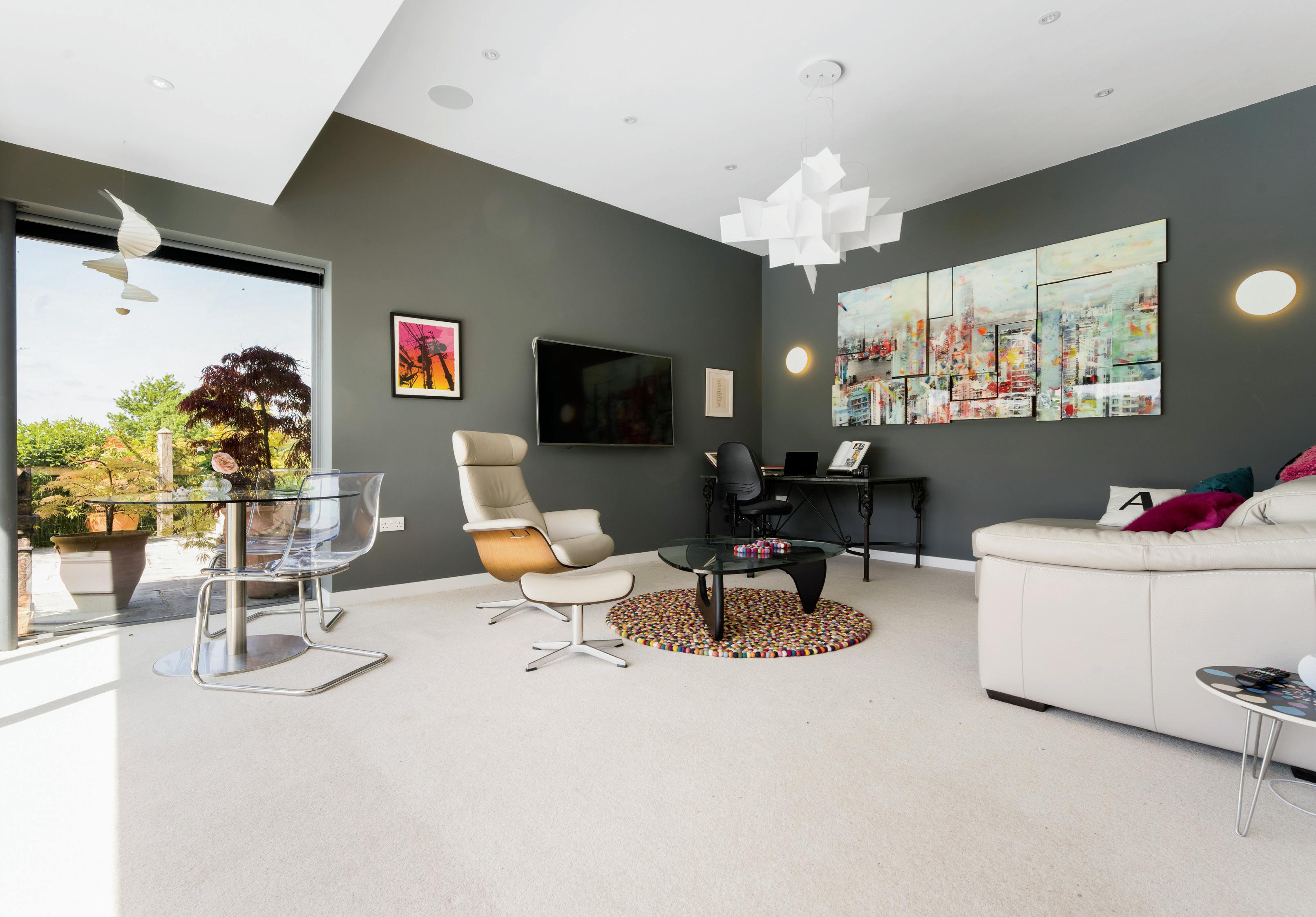 Another benefit of the property is its eco-credentials. “We have ground source and air source heating as well as solar panels,” say the owners, “and the expansive windows mean we rarely need to turn on the lights, even in wintertime. In addition, we have built a high-tech, fully automated extension which could provide accessible annex accommodation for an elderly relative, so the house is flexible enough to meet future needs.”