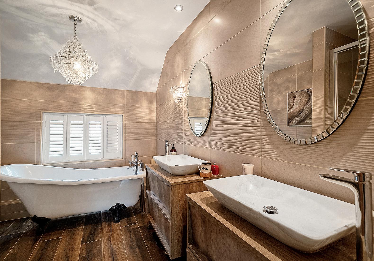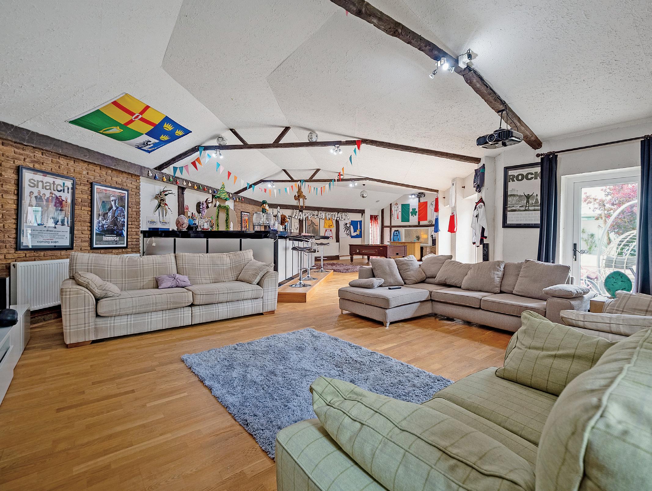 Outside, the extensive gardens serve as an extension of the house itself. “The garden is simply beautiful,” the owners say. “Divided into different zones, the grounds include a rear garden which is mostly laid to lawn and planted with shrubs and trees, as well as a lovely walled garden which is so private and a real suntrap. To the front of the house is another garden with a sweeping driveway, large enough to accommodate up to 20 cars when we host big gatherings. One such event was our son’s 30th birthday party, for which we had 120 guests with a marquee in the back garden, live music, and lawn games. We have a 66 x 22 foot bar which opens out onto the courtyard, which is amazing for parties. Conversely, when it is just the two of us here, electric gates and CCTV ensure total privacy and security, so that when we come up the driveway and the gates close behind us, we feel like we are in our own world! There is nothing like coming home to this place.”