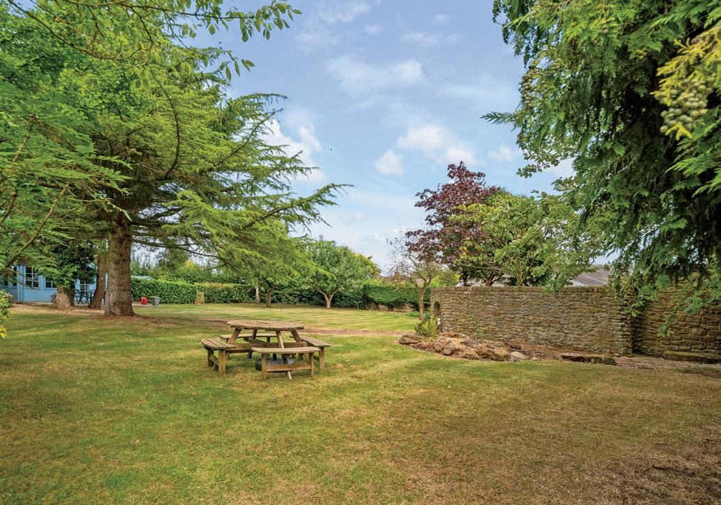 The sanctuary garden, enclosed by a brick stone wall, features a decking area overlooking a serene pond, creating a peaceful retreat. Various shrubs and trees enhance the tranquillity of this space. The formal gardens, accessible from the sanctuary garden or via a gate by the driveway, are beautifully laid to lawn with a selection of trees and bushes. A summer house, currently used as a gym, offers a perfect spot to enjoy the countryside views.