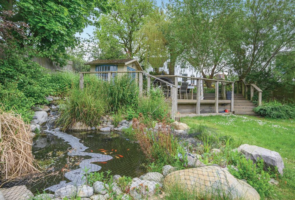 The garden has been remodelled to create a private, green and tranquil oasis where you can walk from the patio down the few steps to the lawn or sit on the lower patio by the calming pond and waterfall. The summer house and decking are ideal for summer barbecues or afternoon tea. It is the perfect garden for noisy barbecues or a quiet, relaxing afternoon.