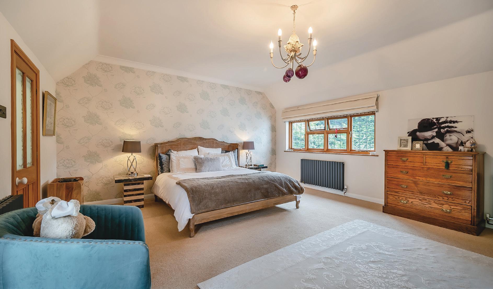 The large master bedroom and en suite is a superb adult retreat, where the balcony adds to the attraction of the room. You can relax with a morning coffee or evening glass of wine, and savour the leafy view across the garden, trees and beyond that the sweep across the landscape to the next village.