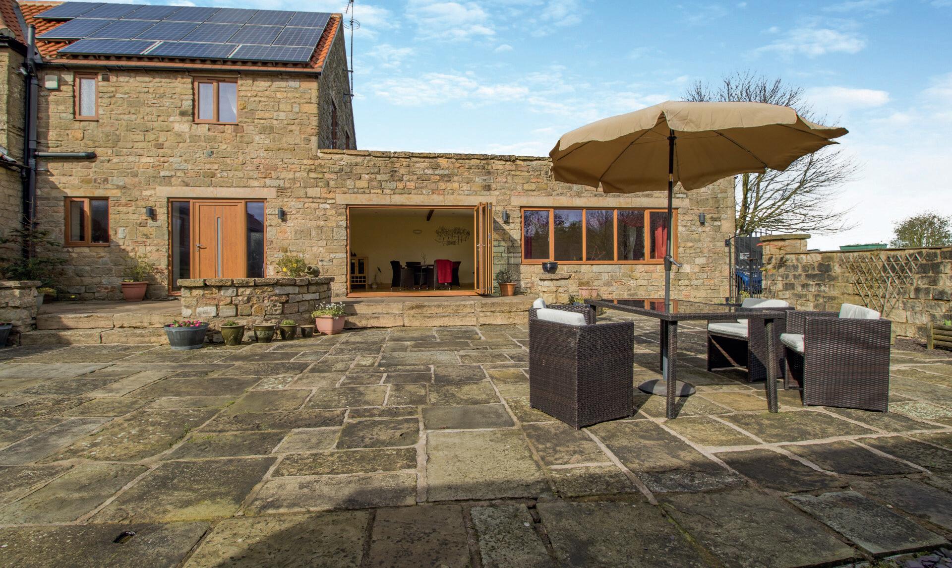A rear hallway has a door opening to the side courtyard, offers access to a generous boot room/utility presented with furniture matching the kitchen, complimented with granite work surfaces and a stainless-steel sink unit with a mixer tap over. There is plumbing and space for an automatic washing machine and dryer, a window overlooking the courtyard and exposed beams into the apex of the building.