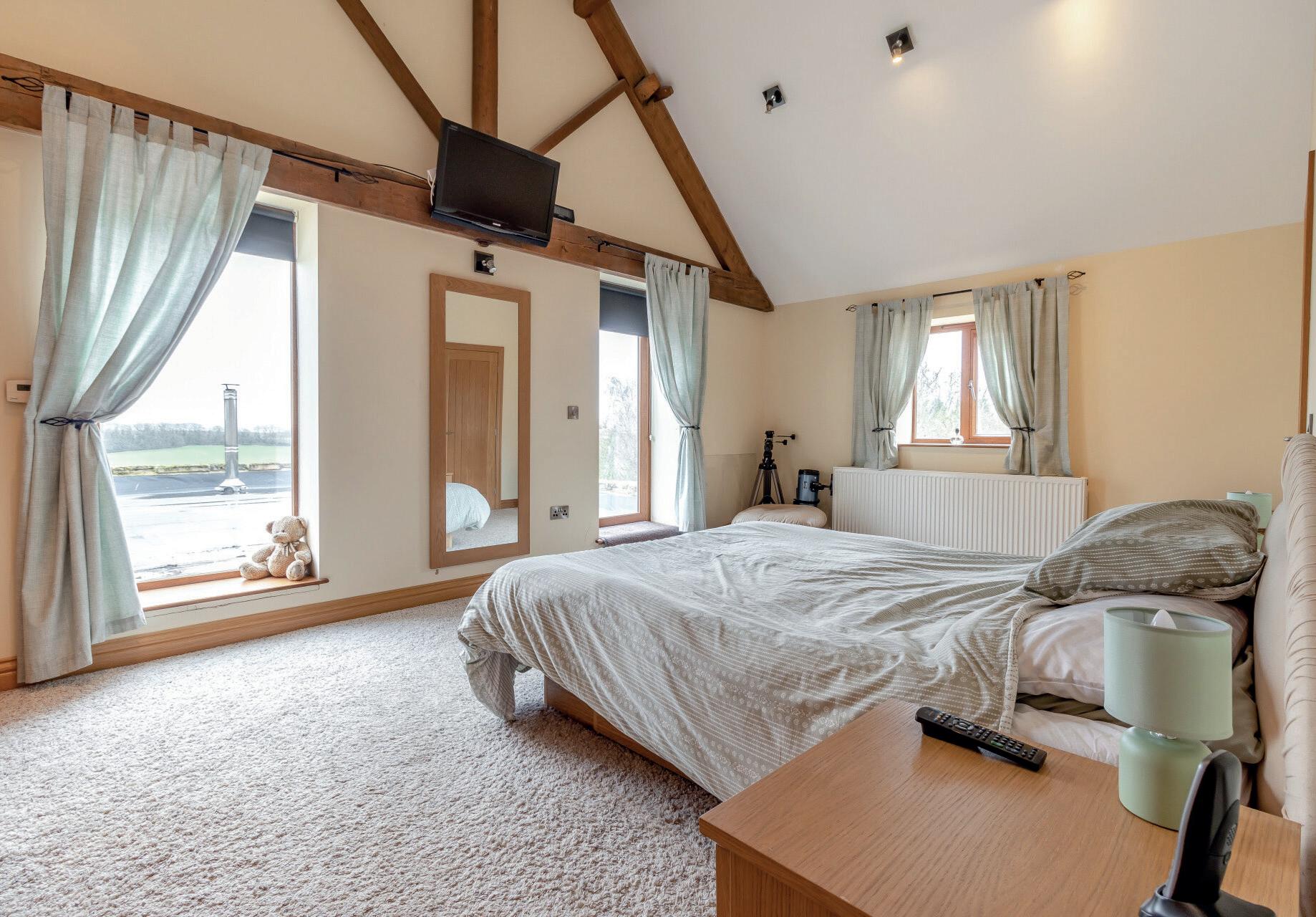 To the remainder of the first floor there are two additional double bedrooms; one positioned overlooking the side courtyard with original beams and trusses exposed into the apex of the ceiling, this room benefitting from fitted wardrobes, a dresser, drawer units and bedside drawers. The fourth double bedroom once again has exposed timbers into the apex of the ceiling and a window which commands a view over open countryside.