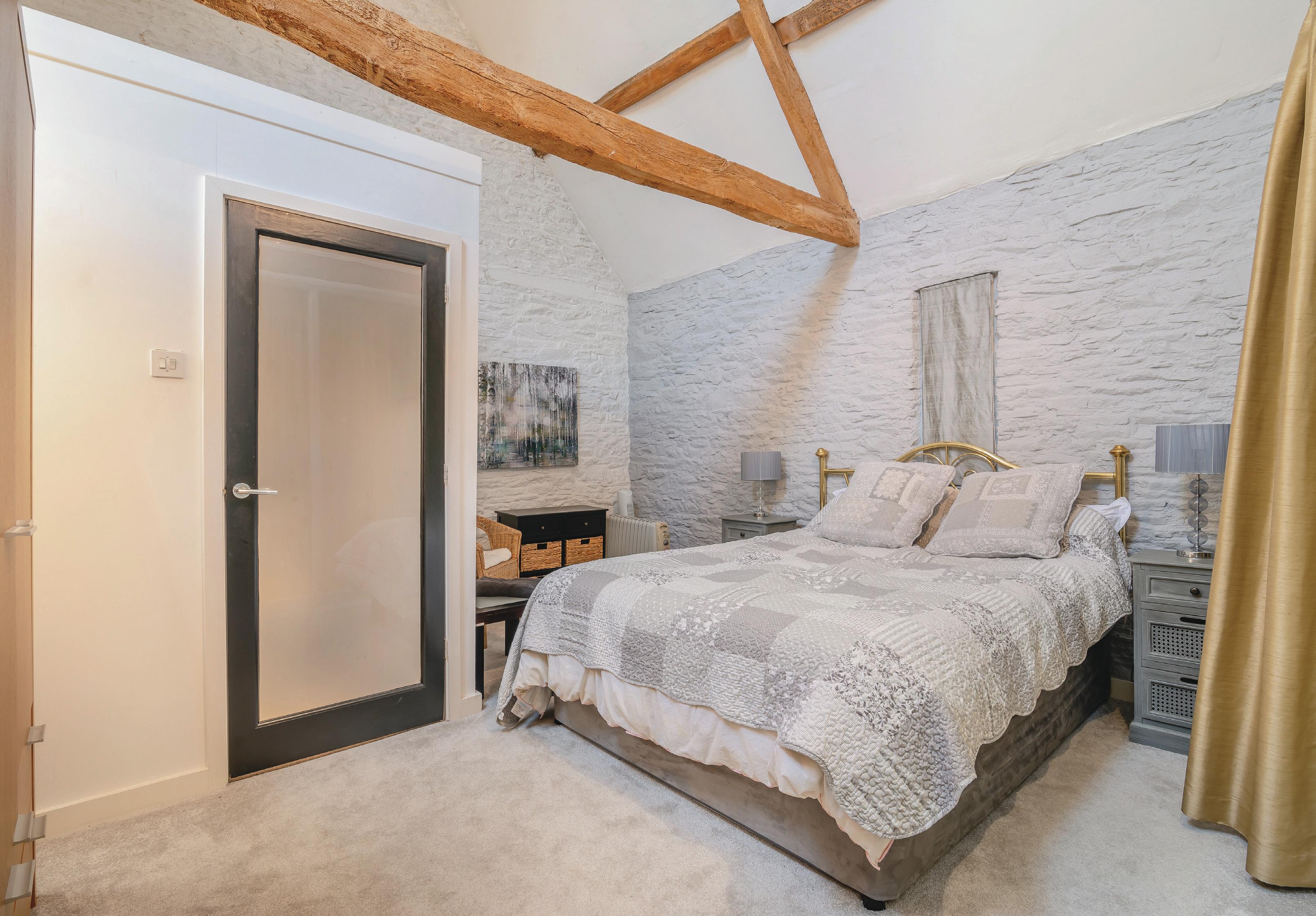 Now it’s time to choose one of the two contemporary staircases that ascend from the dining room and lounge to explore the two mezzanine levels. Both levels offer a galleried landing from which the view down into the barn is absorbing and the view above to the beams is incredible. Each mezzanine is home to a double bedroom with an ensuite shower room as a unique and popular place to call your own - the children or guests will be fighting over these two rooms.