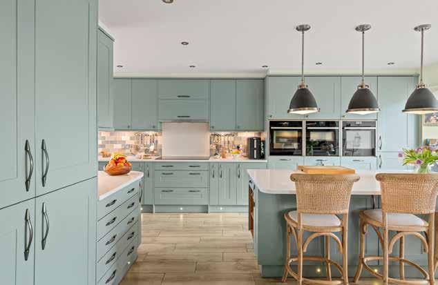 As mentioned, the kitchen has been completely remodelled by the present owners and is now configured as a sociable, practical room centred around a large island, with painted cabinetry, generous work surfaces and integrated appliances.