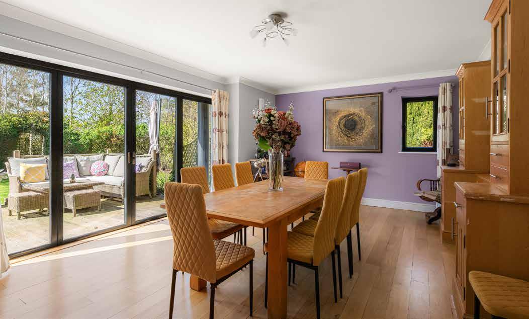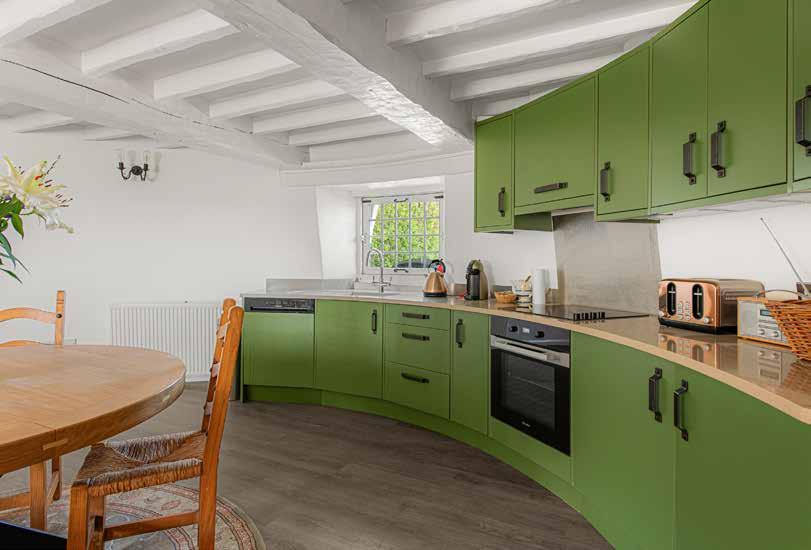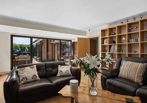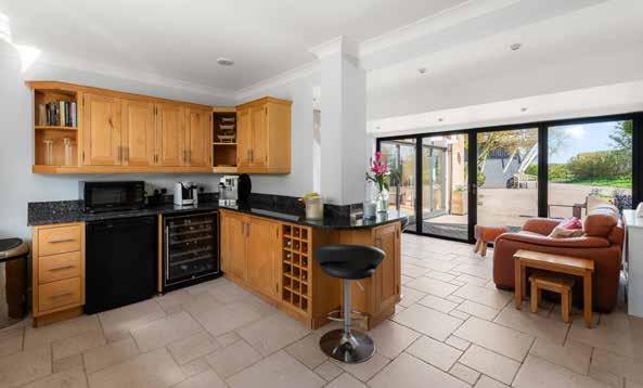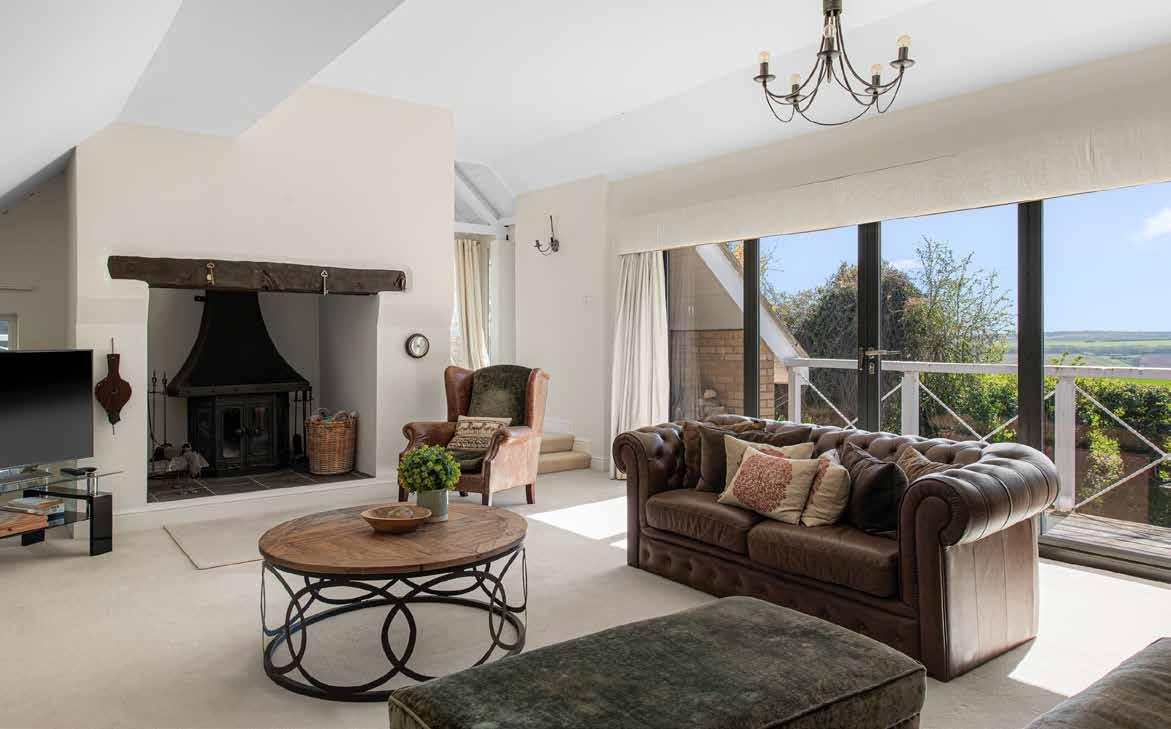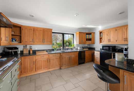 Inside the house the arrangement is generous and adaptable, with four reception rooms providing a range of settings for daily life. The kitchen and informal sitting area form the natural centre of activity and benefit from morning light through recently installed powder coated aluminium windows and doors. These were replaced throughout the house in 2023 and bring both improved performance and reduced maintenance requirements. The kitchen itself has been extended in its layout since the present owner’s arrival and now works as a sociable everyday space as well as a practical working environment, with underfloor heating continuing through the adjoining snug area.