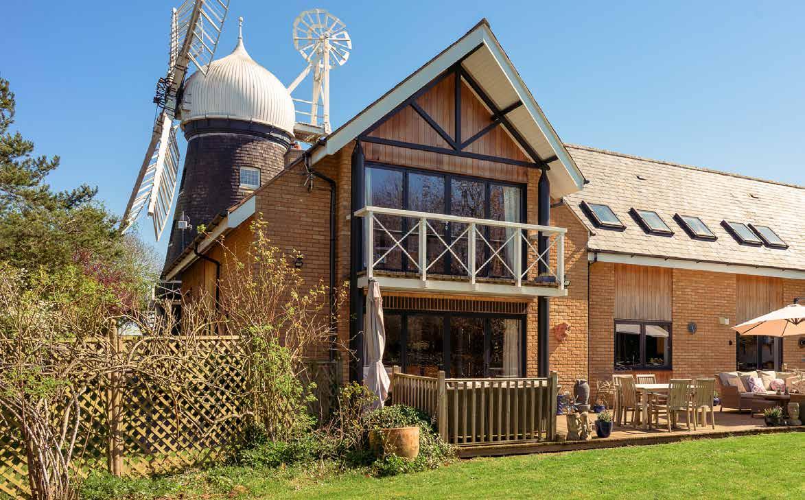 Although the windmill forms the visual centrepiece, the principal living accommodation sits within the adjoining brick-built house constructed in 1997 and designed to work as a practical family home. The two structures connect at ground floor level and again externally at first floor via balconies, allowing them either to operate as a single integrated residence or as two clearly defined but related living environments.