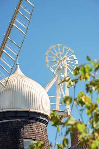 Adjoining the house, the four-storey windmill provides a second independent living environment that significantly extends the flexibility of the property. Dating originally from the eighteenth century and rebuilt from the ground up in 1968 as a reconstruction of the earlier windmill, the structure remains one of the defining features of the local skyline. Although its internal milling machinery was removed when it was converted to residential use, the windmill retains its distinctive external form complete with sails, which are maintained and rotated periodically to ensure their long-term stability.