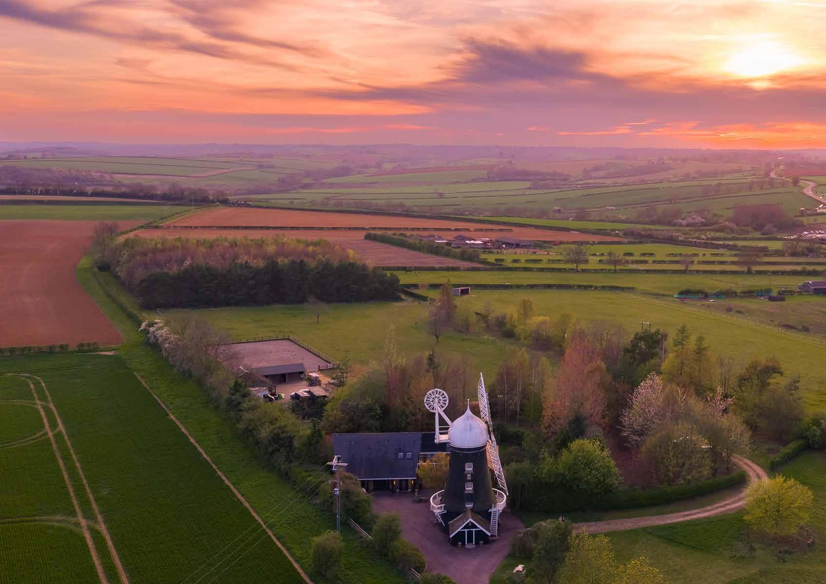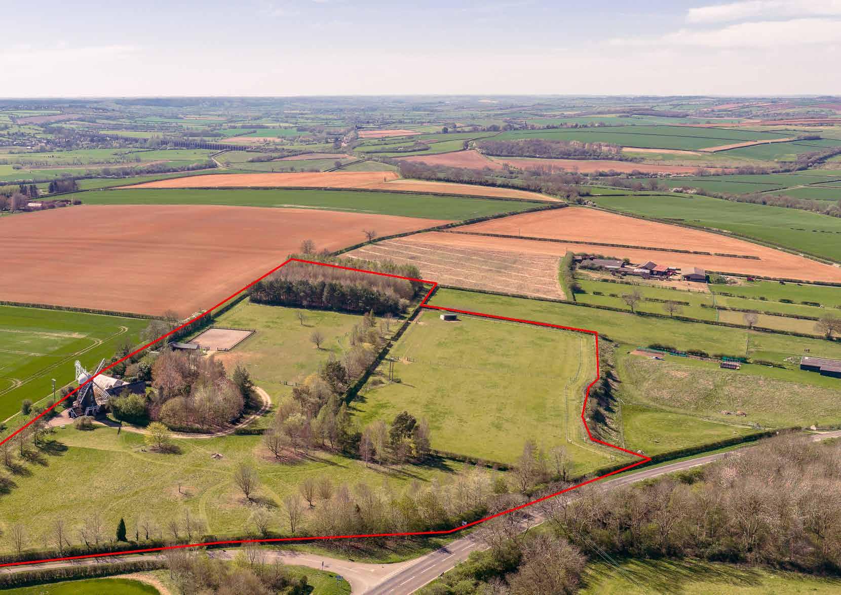Approached along a quiet stretch of Barrowden Road and set high above the Welland Valley, The Windmill is one of those rare Rutland landmarks that is instantly recognisable from afar yet unexpectedly comfortable and practical once inside its gates. Combining a Grade II listed four storey windmill with a substantial modern brick house and around fifteen acres of gardens, pasture and woodland, the property brings together architectural character, flexible living space and a fully established equestrian setup within a single coherent holding.