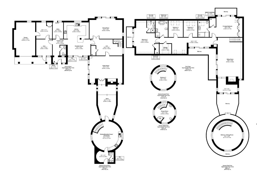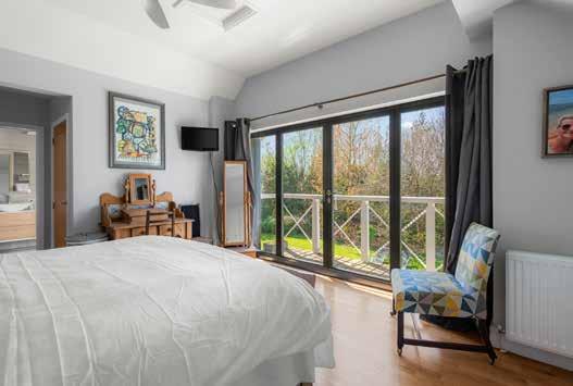 Across the upper floor the bedroom accommodation is arranged around a principal suite and guest suite each with their own en suite facilities, together with two further bedrooms served by a family bathroom. The layout provides a balance between privacy and connection that works equally well for family occupation or visiting guests.