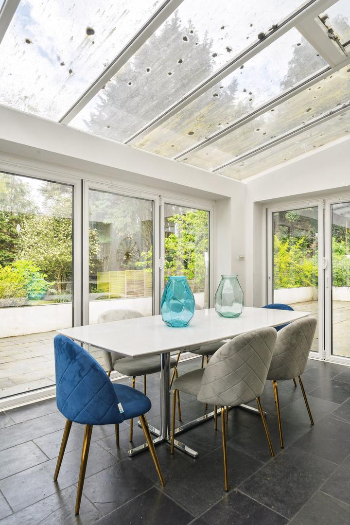 Spanning two floors, the property has been cleverly renovated over the years to offer plenty of natural light and spacious accommodation. The welcoming entrance hallway leads to a double-aspect reception room, which has a fireplace and access to the rear lawn garden through French doors. There is a fabulous formal dining room which is perfect for entertaining or enjoying family dinners, a study that also lends itself to a playroom and a beautifully modern open plan kitchen and family room.