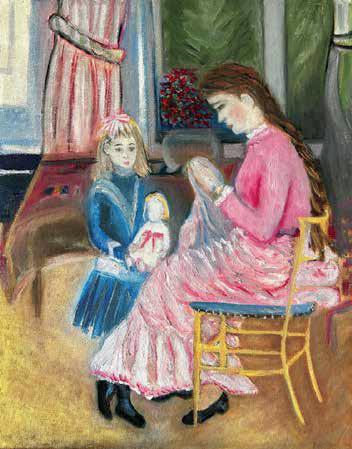 In these two chapters of the book, the distinction between my experience as an artist and professor of art history and my mother’s beginning with a process she had never studied or experimented herself is expressed. My first realization from mom is that she could not do anything that once was based on memory and practice, such as playing the piano or peeling a potato. Maybe it is interesting to consider the difference from playing the piano (which she never thought of herself great at, perhaps by comparison to her mother) and making a painting. But under this challenge, Mom seems to have awakened a new ability to overcome her own limitations by taking a new approach to painting through her imagination. She decided to copy from a very old photograph from her mother as a baby, with her aunt and uncle also as children.