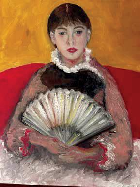 Our next paintings became more complex, as portraits of Renoir and Picasso generated richer palettes and new metaphors to the human portrait. The modernists allowed much more freedom than the more classical portraitists. Mom could finally begin a canvas totally on her own, still afraid but daring, aware that in painting some traces could be accidents. She still thought of family members as she began copying the artists’ works but then arrived at a new place where these painted figures became something new. They could be more dignified, less sad, or with different body features, as we noticed that through our mistakes we could create new possibilities, new references, new memories. The portrait of a Spanish woman with her shawl and fan became her best oil painting so far. As we continued to paint, we studied what in the works were awareness of the artists’ experiences. In Picasso’s original work, how the model was sitting in his studio, the walls behind the woman which contained sketched lines, accidental and intentional were left as part of the work. We noticed that the wavy shades of gray on the wall created a silhouetted shadow of the woman’s body, as Picasso might have intended to redefine the objective detail of the room by playing with the possibility of the unexpected. Mom was impressed with the ability to rethink what was seen with what was imagined. I asked her to add something new to her work.