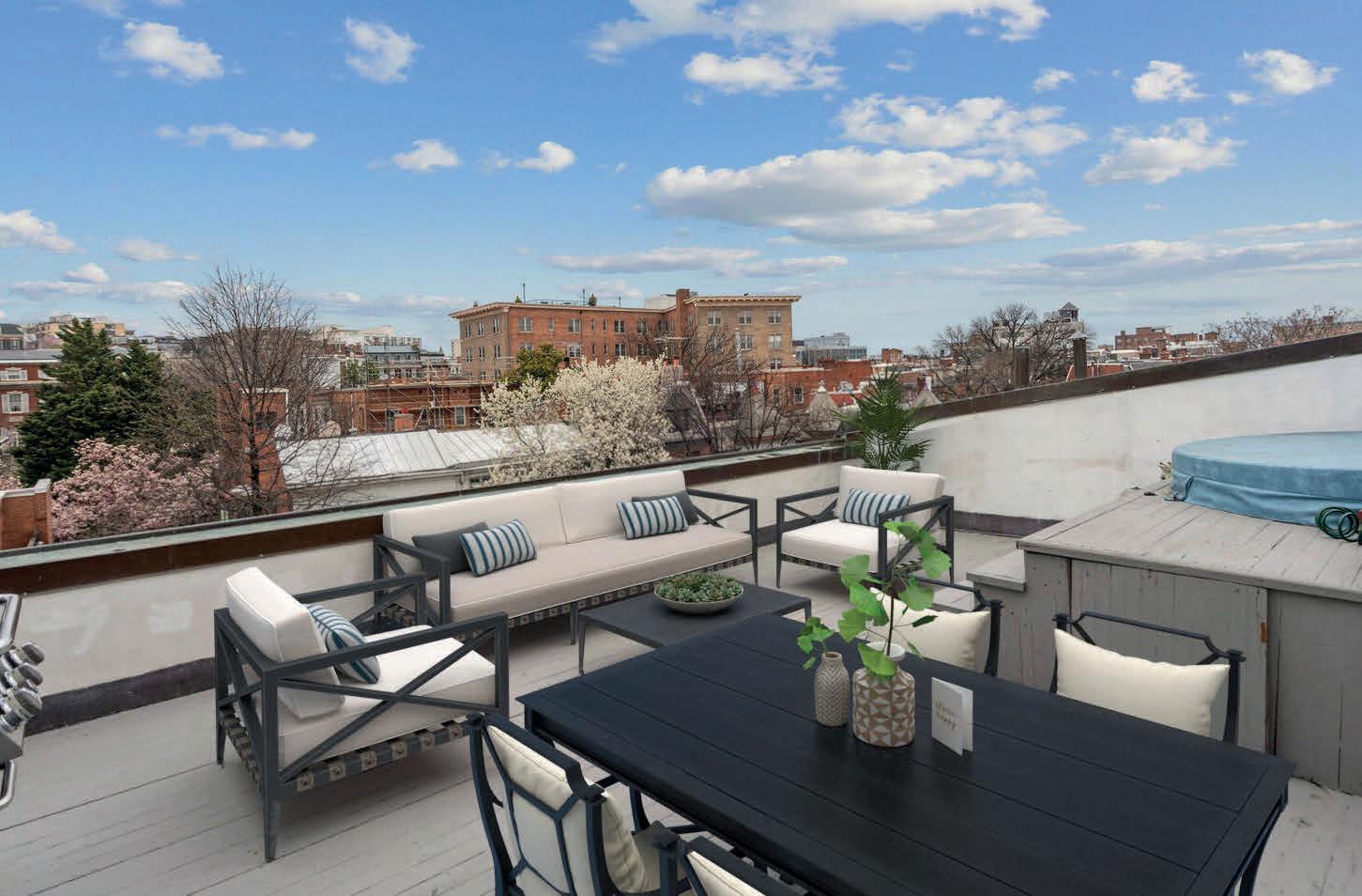 This stunning four-story historic rowhouse at 635 Maryland Ave NE, which was newly renovated by QHG Construction and is located behind the Capitol and Union Station, embodies historic architecture and refined modern elegance. With approximately 4,900 sq ft, it features 6 bedrooms and 5.5 sleek bathrooms. The open floor concept, flooded with natural light, tall ceilings, European white oak wood flooring, top of the line appliances, exquisite hardware and fixtures, as well as 4 gas fireplaces are sure to impress with attention to detail. The gourmet kitchen with its custom fluted inset white oak and white shaker cabinetry, Calacatta Cervaiole stone countertops and large accordion Pella doors leading into a courtyard will make entertaining friends and family memorable, as does the beautiful private rooftop deck with a built-in outdoor kitchen, outdoor fireplace and television. A studio apartment above the detached garage offers a private space to accommodate visiting family or friends. This lavish home is equipped with modern technology such as a wireless security, smart lutron caseta switches and integrated Sonos sound system.