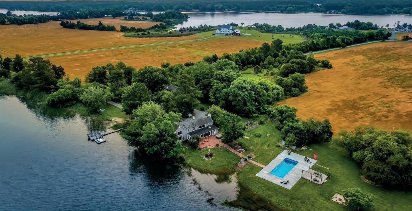 3 beds | 3 baths | Offered at $2,795,000. Welcome to the historic Jane Lowe Estate, an idyllic set of two waterfront properties near St. Michaels that present unparalleled opportunities for escape, recreation and relaxation. Soak up quiet sunsets, watch heron and eagles in a sheltered cove and boat to Tilghman Island, or slide kayaks or paddle boards right into the water from your own sandy beach. The 2,180 sq ft farmhouse has breathtaking views of the pool and serene waters of Rabbit’s Cove. 3 bedrooms and 3 full baths. The house dates back to the 1800’s and has been tastefully updated with modern comforts while preserving its timeless charm. It was once owned by Thomas Hunter Lowe, speaker of the Maryland House of Delegates, who was known to have political acquaintances land their helicopters in the neighboring field. A pier with built-in seating is the perfect spot for expansive views of Harris Creek. The farmland surrounding the more than 5 acres allows for unusual privacy not far from such charming seaside towns with vibrant restaurants and unique shops. This property, with two homes on separate parcels and a serene setting, offers so much possibility, whether as a second home or rental property. This property is being sold as a compound with 8478 Jane Lowe Rd. Both properties for $2,795,000.00. This property has been an Extremely successful vacation rental, sleeps 12.