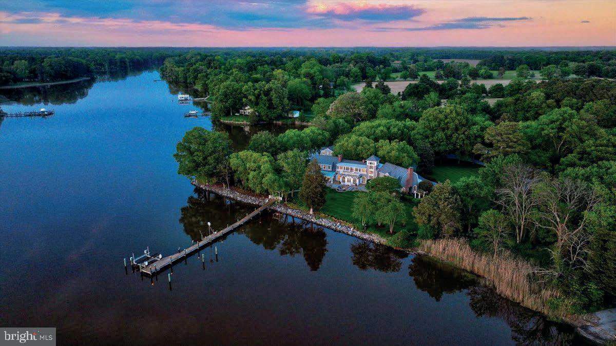 “Casa Marengo” is a Miles River waterfront estate in Easton, Maryland, including approximately nine acres, broad western views, southern exposure and sunsets over St. Michaels. The residence enjoys an amazing and unparalleled presence as Hunting Creek joins with the Miles River including a deep-water dock, six feet MLW, a tidal pond, riprap-protected shoreline, sand beach, pool, and a tennis court. The open floor plan provides an inviting atmosphere for entertaining with three guest and two primary suites, along with a caretaker cottage and five-car garage.
