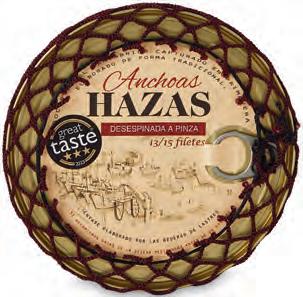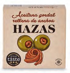These king-sized green olives look wonderful, with the anchovy fillet nestling in the pit hole. On eating, they unleash “an explosion of savoury, umami tastes that evoke both the sea and the smell of olive groves”. anchoashazas.com