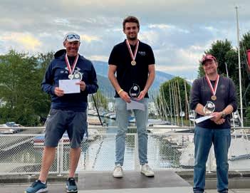 Below: Dominique Wälchli the winner, Christoph Wilke the sponsor and Christoph Burger, president of the Swiss Finn Class.