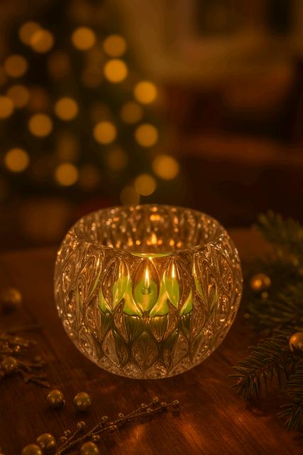 Oliivin vihreä kohoraidallinen lasi, tuoksuvalla parafiinilla. Tuoksu hienostunut kukkaistuouksu.