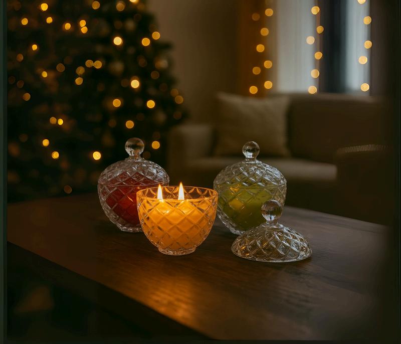 Glasskål med lock, gjutet doftljus av paraffin, 2 vekar