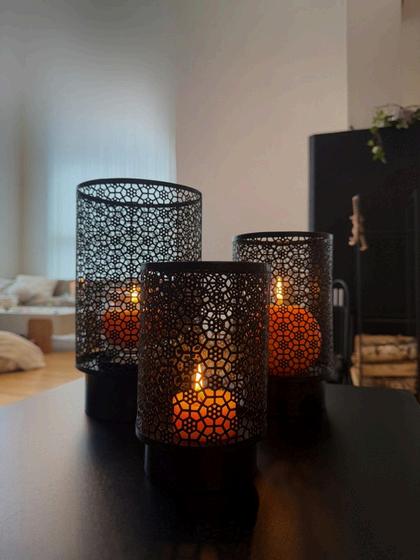 Tillverkad av paraffin, smälter i mitten. Tryck in kanterna när de blir mjuka. Då behåller ljuset sin vackra form och rinner inte av Se också till att veken stannar i mitten. Vid behov kan du justera veken med en knivspets. Låt ljuset brinna i 3-5 timmar åt gången. Diameter 10 cm, brinntid ca. 40 h.