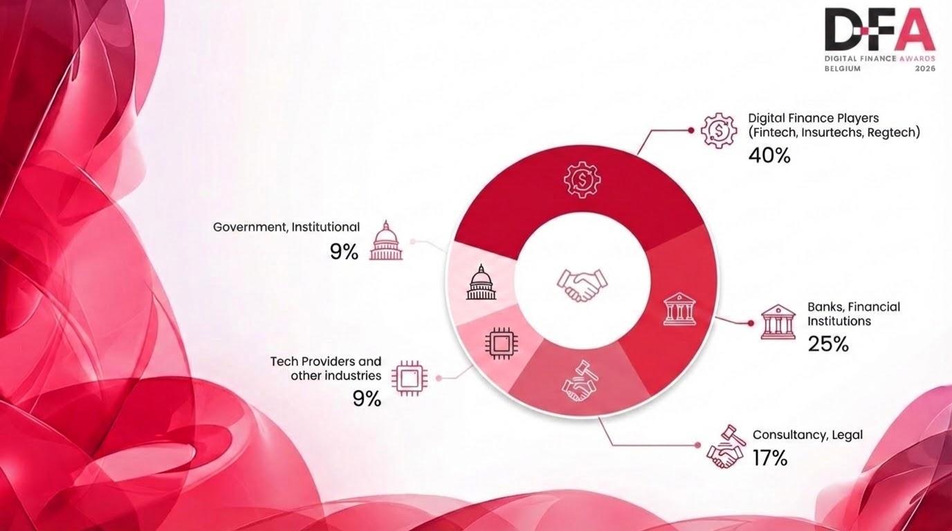 The first and only award ceremonydedicatedtodigital financeinnovationinBelgium. Bringing together financial institutions, fintechs, service providersandtechcompanies for a night of celebration, shining the spotlight on the digital finance industry’s best andbrightest.