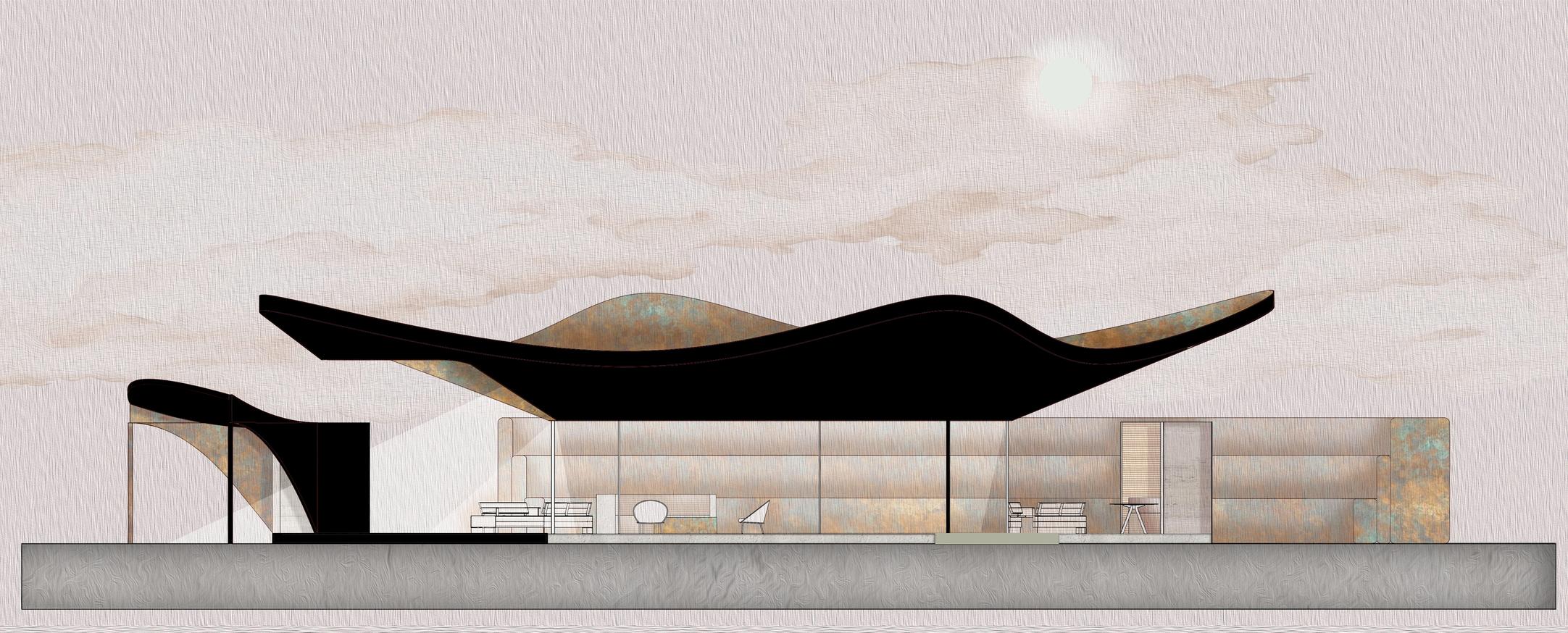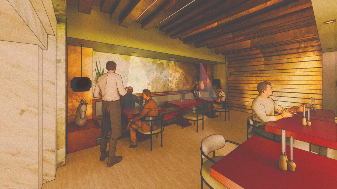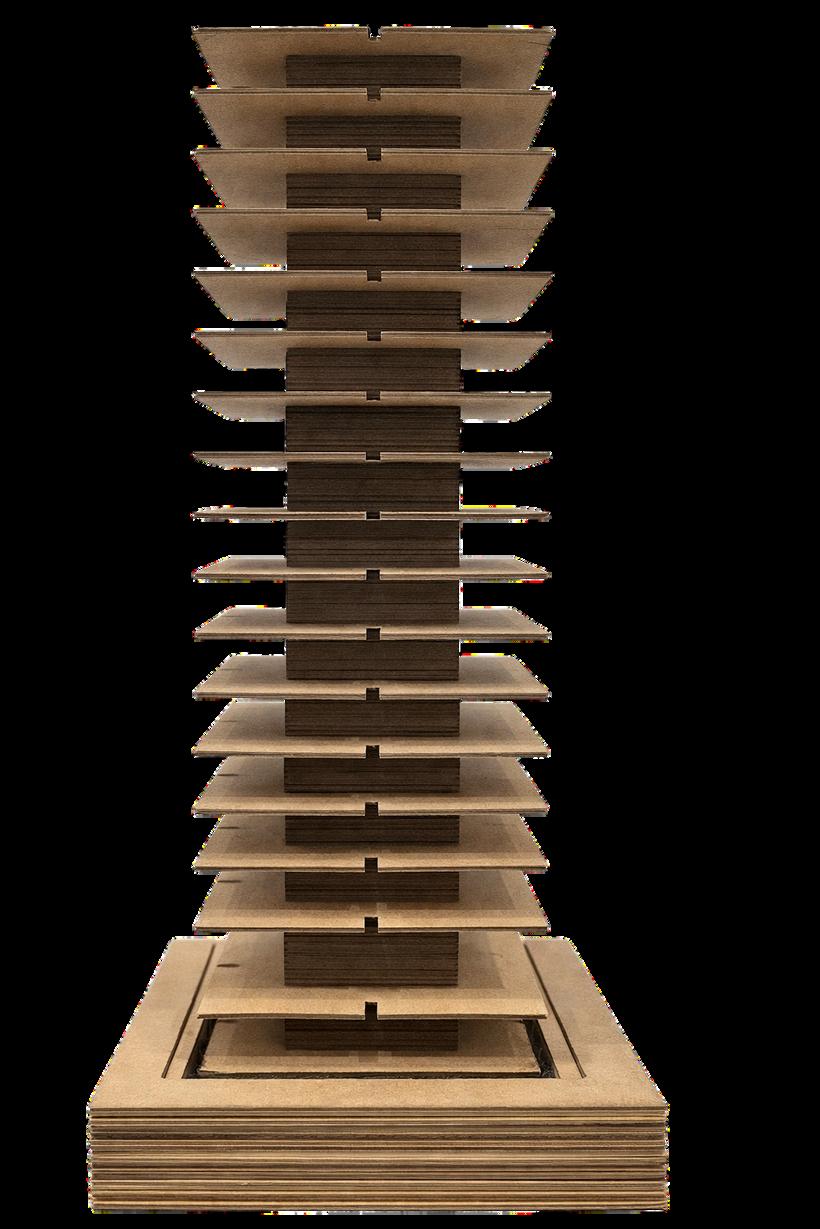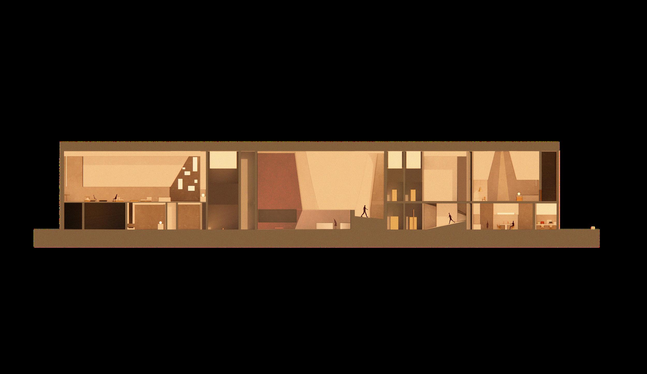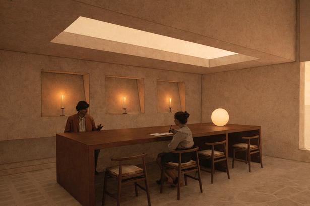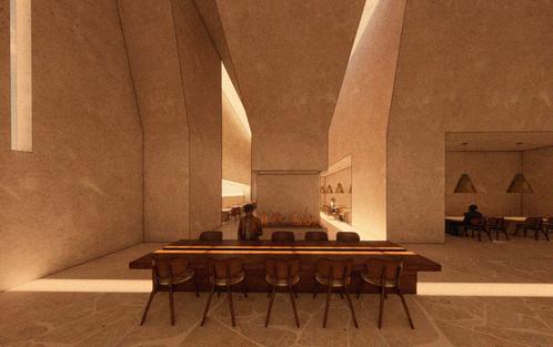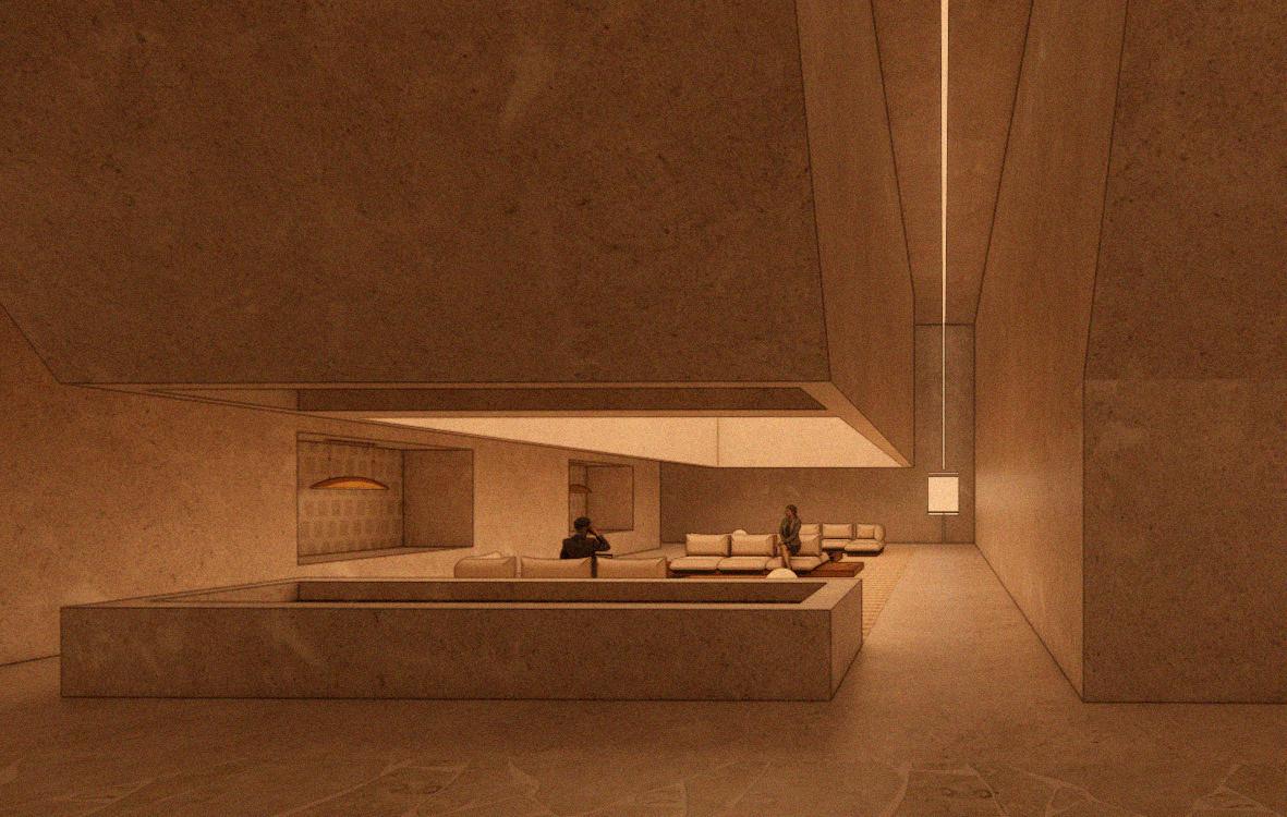 The concept draws from sedimentary rock, where time is marked by distinct layers of stone, symbolizing how the design of space responds to the varying rhythms and durations of guest stays, from brief visits to extended residencies.
