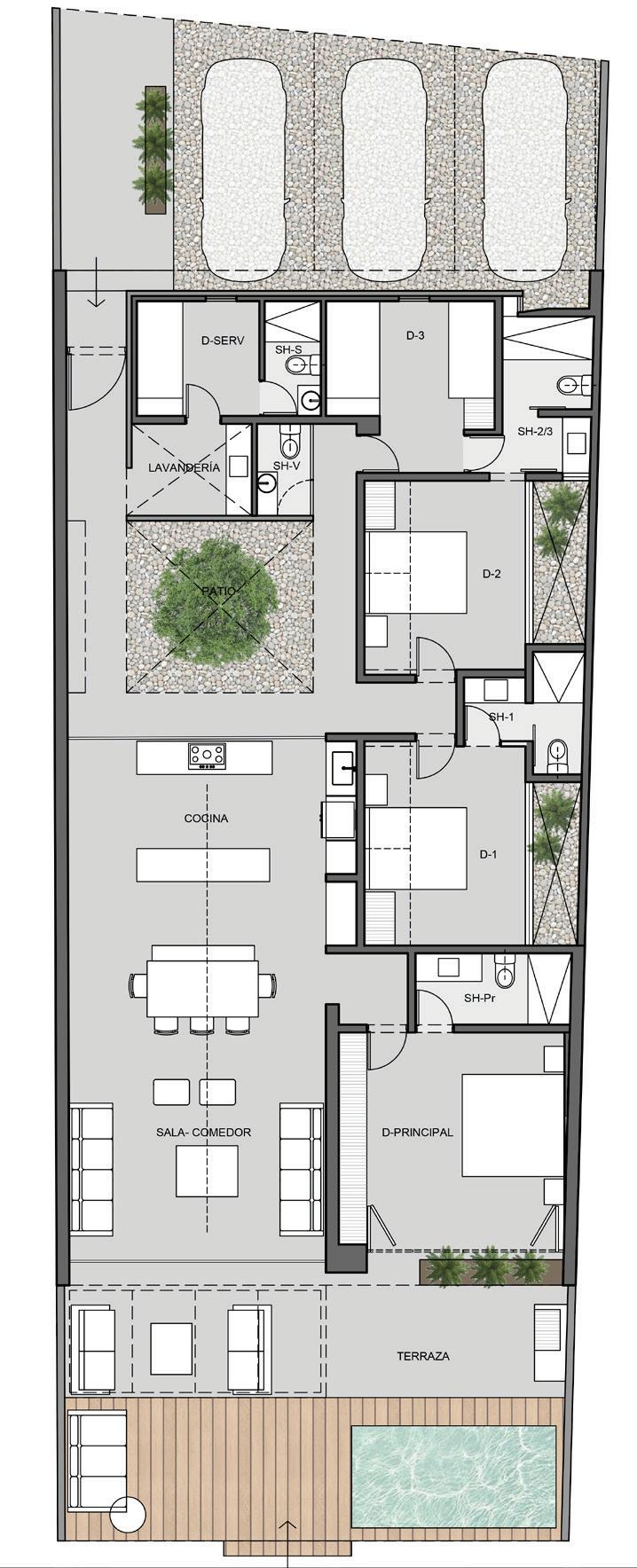 This new residential project, located in a suburban area, was developed from concept design through contruction. Working closely with the lead architect at Arquiga, I contributed to code and condominium compliance, consultant coordination, and the integration of engineering input into the architectural design. I also produced execution and detailed construction drawings to support an efficient construction process.