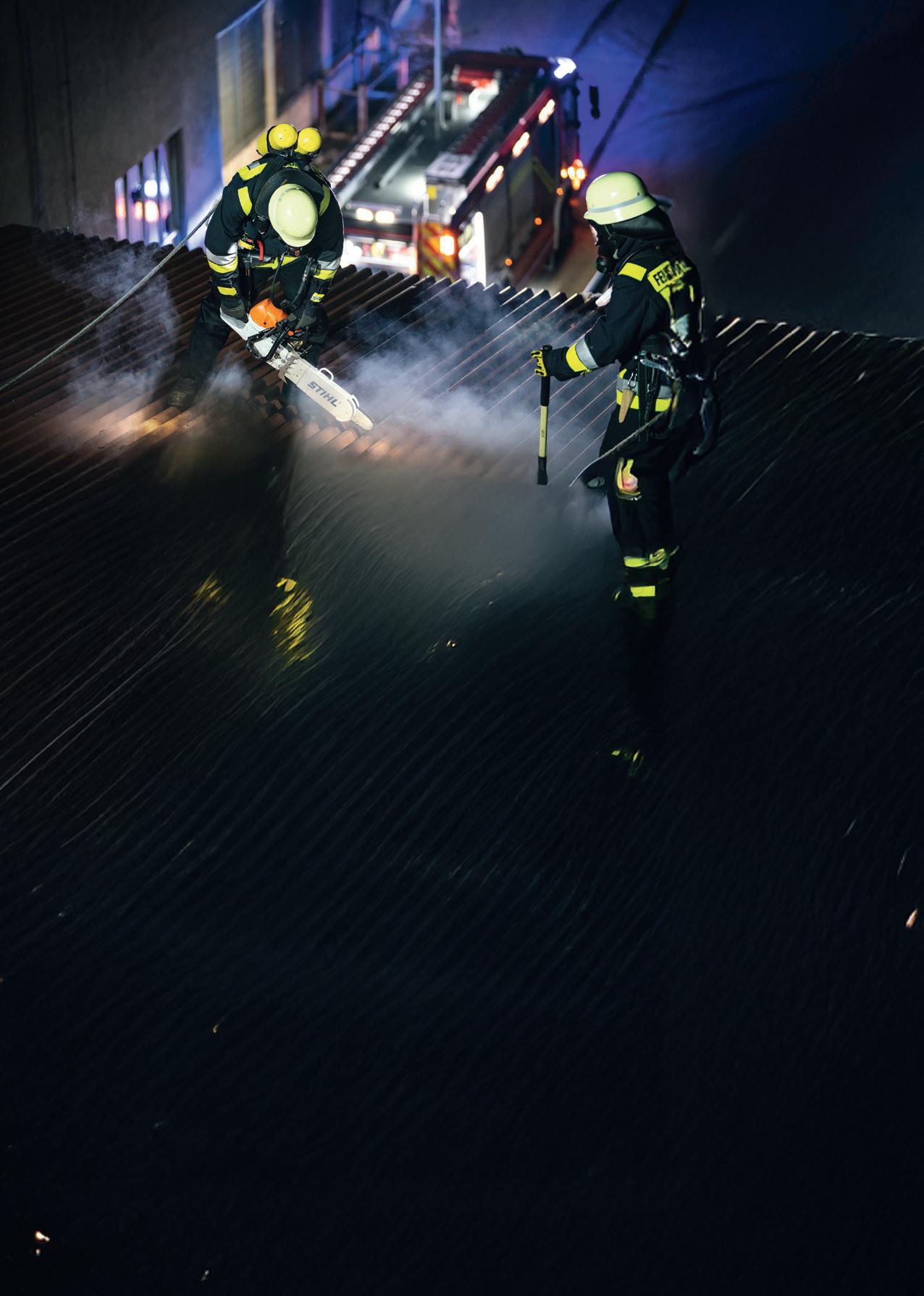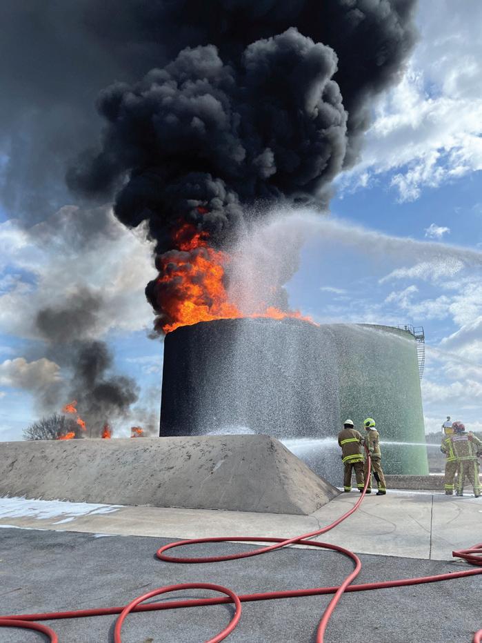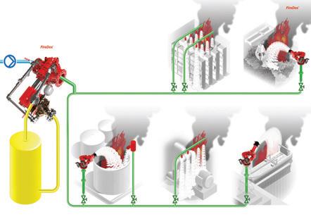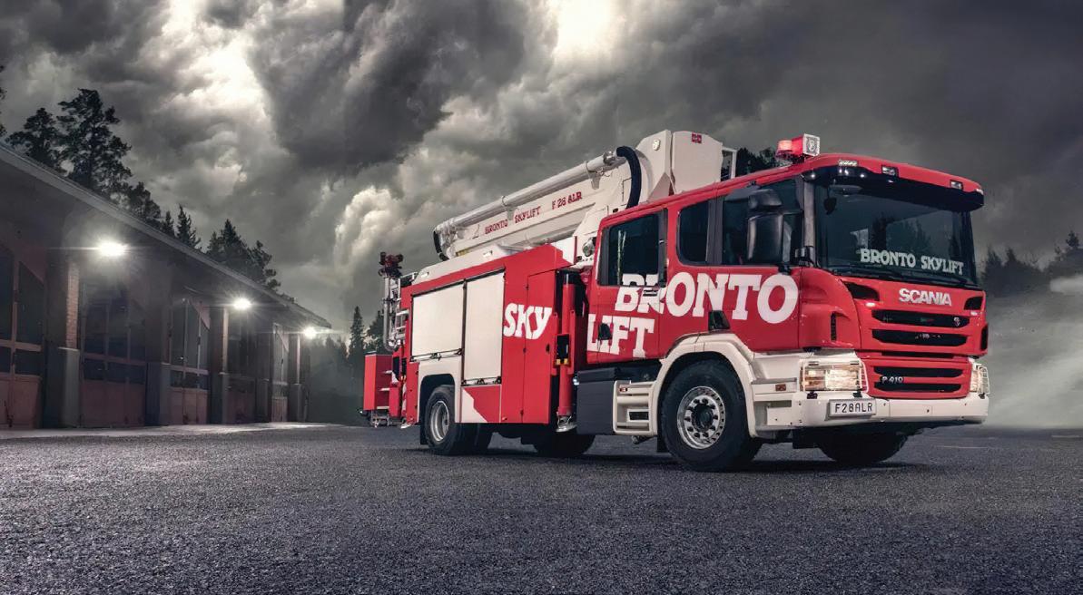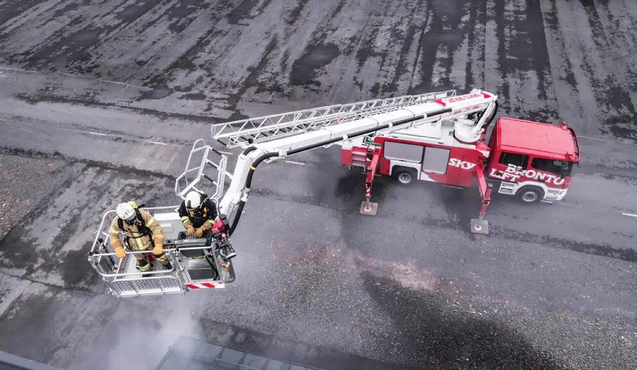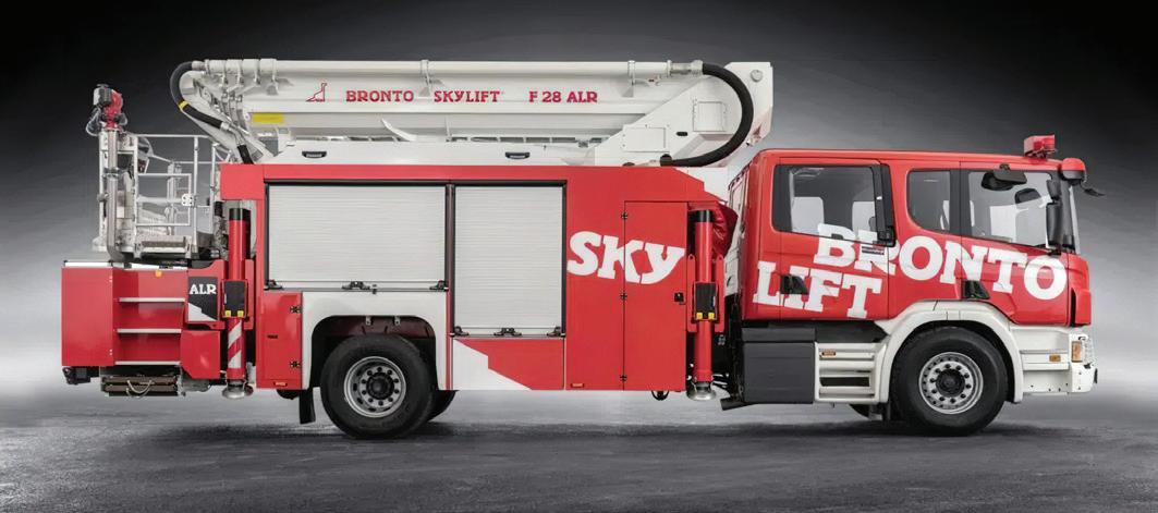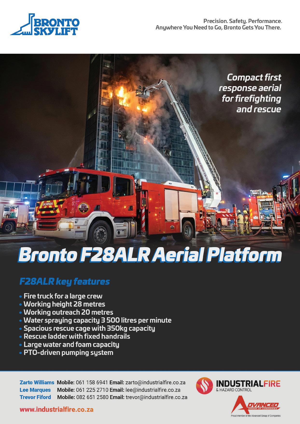 Industrial Fire and Hazard Control shares the effective versatility of the Bronto Skylift F28ALR, which combines the roles of a major pumper, a hydraulic aerial platform and a rescue ladder into a single, integrated unit.