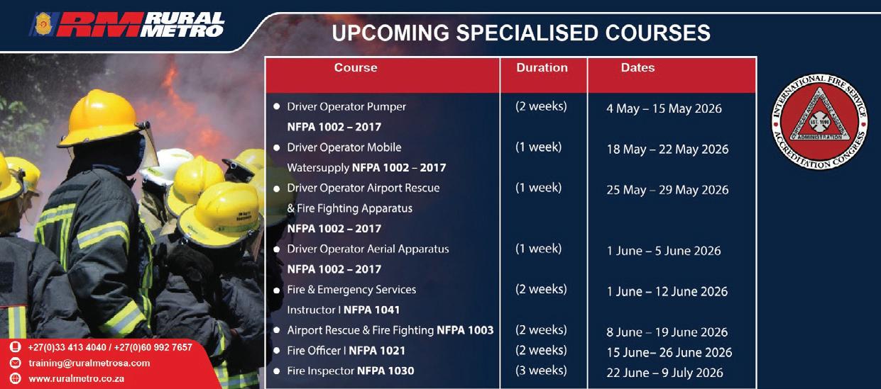 We will feature the 2026 National Fire Services Indaba, which took place on 26 to 27 February 2026 in Bloemfontein, in our next edition.
