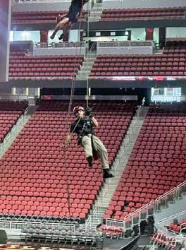 Louisville Quint 7 and Rescue 11 spent the day at the KFC Yum! Center honing their technical rescue skills high above the arena floor. Training never stops!