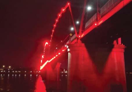 Every year, the National Fallen Firefighters Foundation hosts the National Fallen Firefighters Memorial Weekend in Emmitsburg, MD. The mem orial is an official national tribute to firefighters who died in the line of duty during the previous year. At this year’s event (2023) Louisville Fire Department Firefighters Sean McAdam and John Martin were honored at the memorial. Louisville’s Big FourBridge glows red that night in respect for ourfallen and theirfamilies.