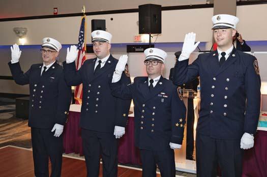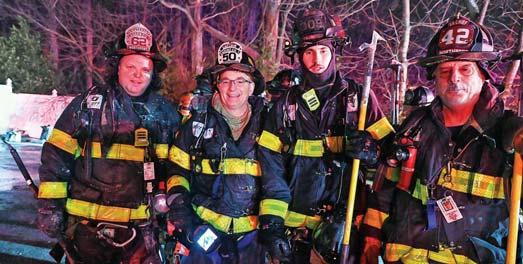 Left to right: Firefighter Rocco Pelosi, Captain Dave Tulkop, exCaptain Chris Gullo, and Firefighter Lenny Turso at a recent Bohemia event.