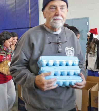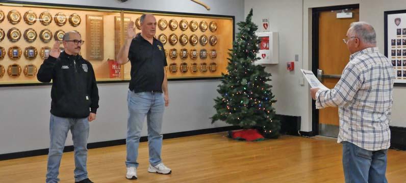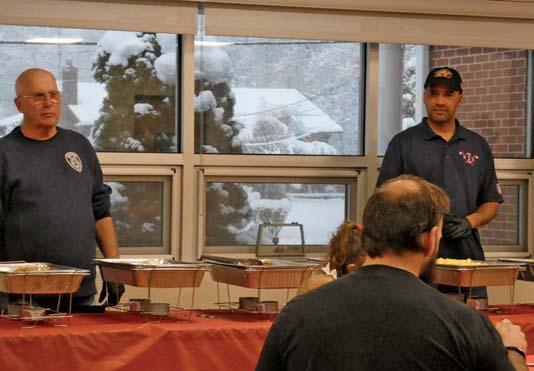 Bohemia Fire Department members (left to right) Ethan Brauer and John Bertone helping out at holiday event.
