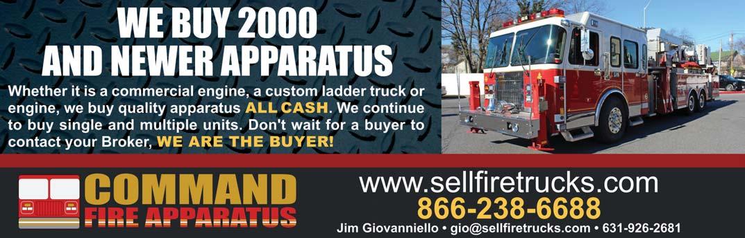 NewtoTHEM BEFORE AFTER Sponsored by Command Apparatus Sold by Command Apparatus Sold by Command Apparatus Sold by Command Apparatus 2001 EMERGENCY ONE Former West Niles Fire Company purchased by Damascus Arkansas 2001 Emergency One 1250 gpm with 1000 gallon tank. 2000 KME 95' AERIAL TOWER 2000 KME 95' aerial tower from East Norwich NY sold to Waterbury VT. To have your department’s apparatus featured here please call Barbara Connolly 631-776-1853 barbara@firenews.com We are looking forward to our new monthly feature “It’s New to THEM” We are looking forward to our new monthly feature “It’s New to THEM” MALVERNE 1998 Spartan/Aerialscope rebuilt and sold to East Quogue BEFORE AFTER FireNews.com Fire News, September2023, Page 79
