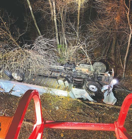On September2, 2022, the Pineville Fire Department was dispatched to a single-carMVAon Route 97 in Saulsville. Units 401 and 404 responded to the call. As dispatch continued to receive calls about the accident, the next transmission stated that it was an 18-wheelertractor-trailerthat had turned over. The next transmission stated that it was a gasoline tanker. As the units got closerto the scene, they were told by dispatch that the cab of the tankerwas on fire. Pineville Fire Department was on scene from 1600 hours on September2 until 0037 hours on September3. As it turned out the tankertruck had 6800 gallons of gasoline and 1200 gallons of diesel fuel, and was fully involved when Pineville arrived. The road was blocked fora little overeight hours while the tankerwas off-loaded to anothertruck and road was cleared by Glen’s Towing of Beckley. The Mullens Fire Department and WVDOTassisted.