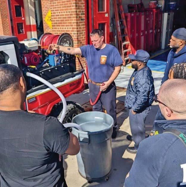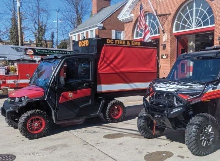 Members of DC’s Bravest Engine 29 and Truck 5 in Palisades drill on the pumping capabilities of the brush UTV located in their quarters. There is also an EMS UTV located there, both of which can navigate along the canal and Capitol Crescent Trail. - Photos courtesy of DC Fire & EMS