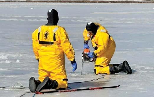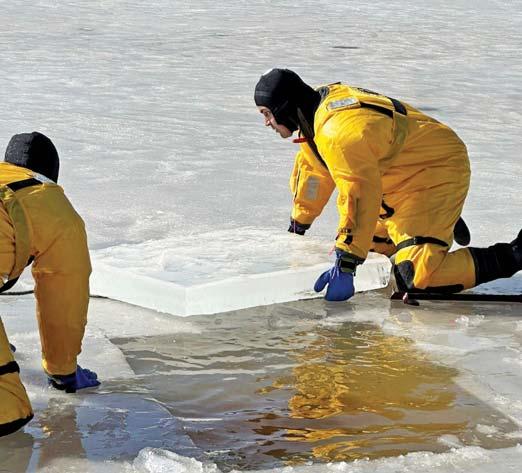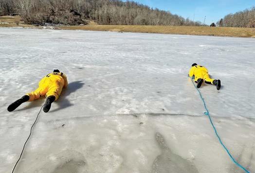 Members of Nitro Fire Department B Shift conducted ice rescue training at Ridenour Lake. The firefighters used special ice rescue suits to keep warm and afloat to make the simulated rescues.