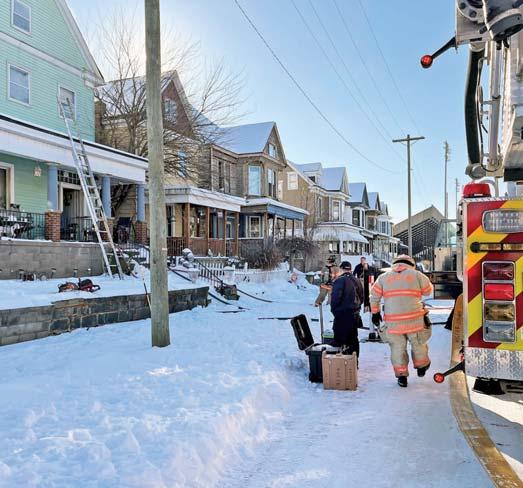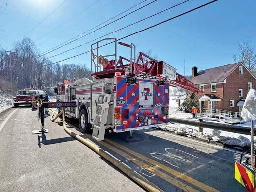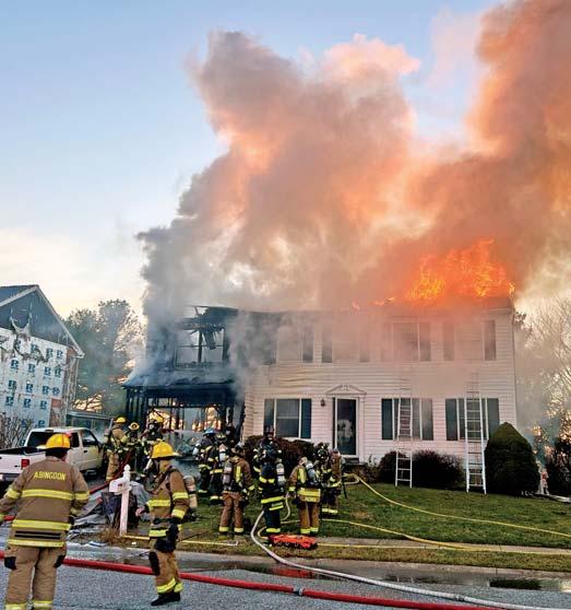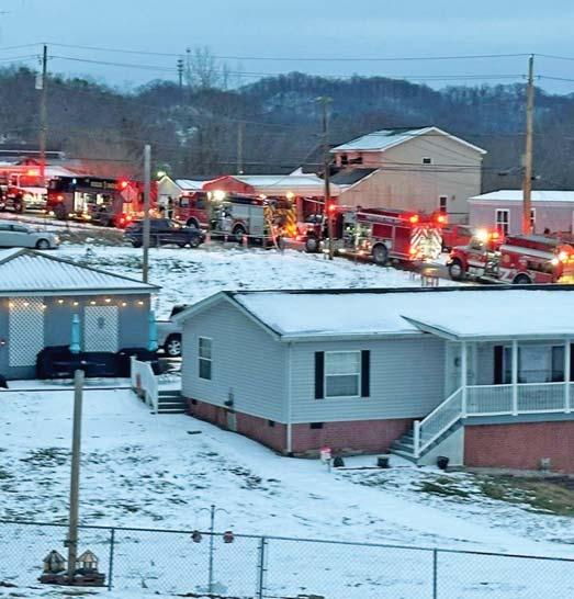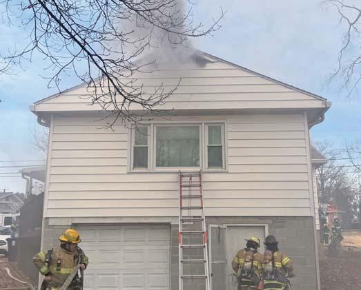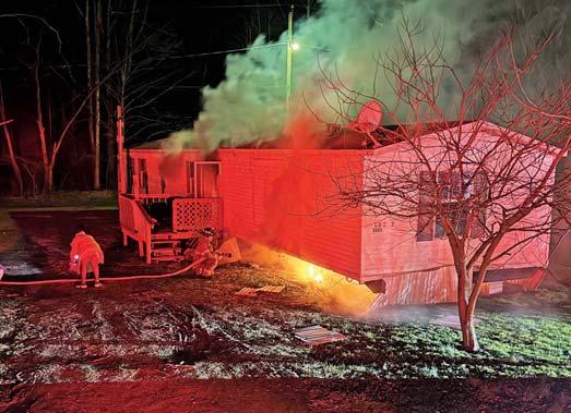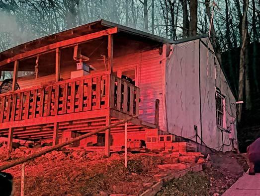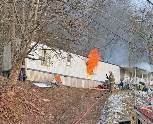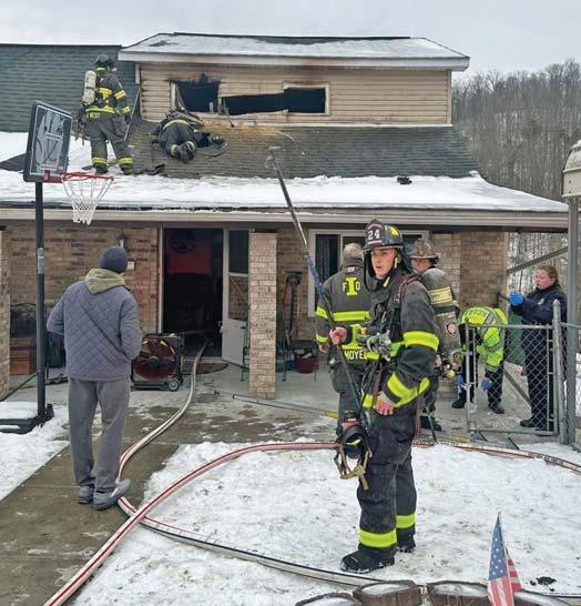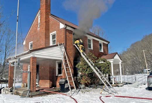 At 1136 hours on Thursday February 5, 2026, Companies 7, 12 (Stonewood VFD), Engines 11 (Anmoore VFD), and 31 (Lost Creek VFD) along with Anmoore EMS were alerted for a structure fire in the 9200 block of Buckhannon Pike in Romines Mills. HCES 671 was in the area and responded to arrive on scene confirming a working fire on the first floor of a three-story single-family brick dwelling. They also advised a parked vehicle displaying a handicapped placard out front thus indicating possible entrapment. An elderly disabled occupant was determined to be home in his secondfloor bedroom. Engine 122 placed a 1 3/4” cross lay in service to make entry through a D side door for an interior attack while Truck 7 assumed search and rescue throwing a ground ladder to the second floor A/D corner to initiate VEIS. Truck 7 picked up 122’s fourinch LDH for water supply and set up their aerial device to the sec-