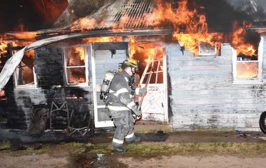 The volunteerfire Companies of Laureldale, Cologne and Mays Landing were dispatched at 2131 hours on April 21, 2023, to Holly Street fora report of a structure fire. Almost immediately, Township Fire Official Chris Dibiase called dispatch and reques ted a second alarm and a tankertask force response. The fire involved the South Jersey Lumberman’s, a 50- x 300-foot metaland-wood frame structure that ran deeply into the woodlands with several storage buildings well involved. The fire grew to multiple alarm status bringing firefighters from throughout Atlantic and surrounding counties. Machinery was brought in to pull the metal siding and roofs apart to fully extinguish the fire; one firefighter was transported to the hospital forevaluation. Command was terminated at 0515 hours April 22, with the fire being investigated by the New Jersey Division of Fire Safety Investigations Unit.