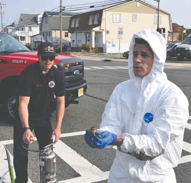 On June 31, 2023, a North Wildwood crew responded to West Spruce Avenue fora report of ducks stuck in a storm drain. Ladder2’s crew removed the storm drain and rescued six ducklings. Five ducks were easily grabbed while the last had worked its way fartherinto the drain. The quick-thinking crew and captain from Ladder2 requested a shop vac to the scene and created a filteroverthe hose to “suck” the duck back to the opening and were able to safely reunite all the ducklings with mom, who remained nearby during the entire rescue. - Fire News photos by Mark Rosetti