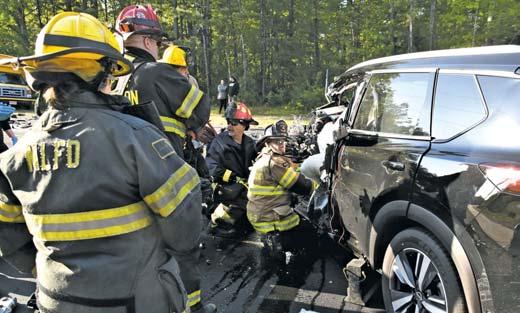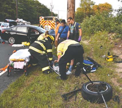 The Farmington VolunteerFire Company responded to Westcoat Road at Aifam Avenue fora report of a vehicle fire following an MVAon August 2, 2023, at 1910. Farmington Assistant Chief Dennis Sharpe arrived, established command, and gave a brief report of no fire orentrapment and had the crew of Rescue 1547 assist EMS with patient removal and de-energizing the vehicle. The crash involved a single vehicle into a utility pole with the passengerlaying out on the shoulderand the driverunconscious being attended to by EMTs. There was also a large spill of paint. Two BLS and one ALS responded to the scene and transported the occupants to the local trauma center. The crash was underinvestigation by EHTPolice and the EMS crews were Egg Harb or Township and Atlanticare Paramedics.