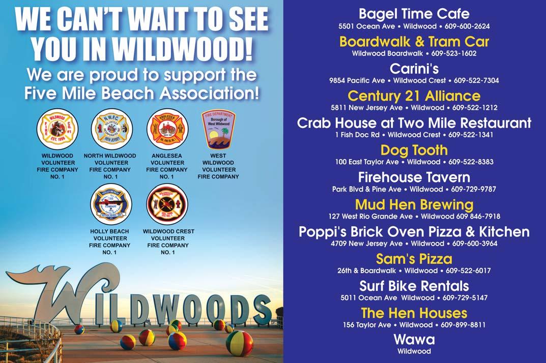 Company, North Wildwood Vol Fire Co, Wildwood Volunteer Fire Company, Holly Beach Vol Fire Company, West Wildwood Vol Fire Co, and Wildwood Crest Volunteer Fire Company make up the Five Mile Beach Volunteer Fireman’s Association who have been hosting NJ firefighters in Wildwood for the last 49 years.