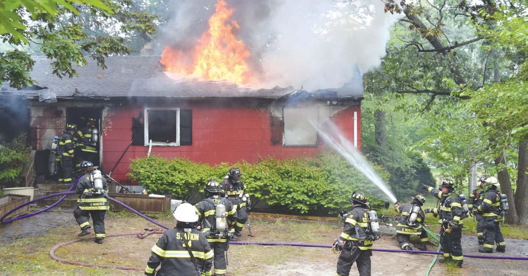 consumed the majority of the home. An interiorattack was attempted but all units were evacuated from the building as heavy fire overcame the crews. Multiple handlines and a deck gun were placed into service fora defensive attack. - Fire News photo by Mark Rosetti