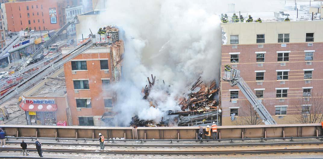 Hundreds of FDNYfirefighters operated at a five-alarm, fatal gas explosion in a mixed occupancy building in Harlem on March 12, 2014. - Fire News photo by FirstOnScenePhotos.com