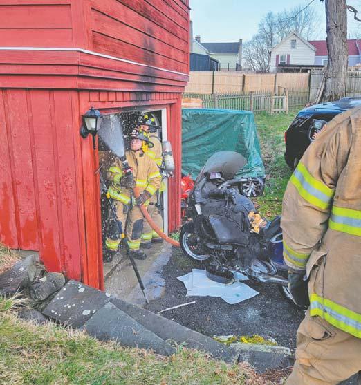 The Athens Fire Department was dispatched on April 1, 2024, to a motorcycle fire on Second Street in the village. Units arrived to heavy fire from a motorcycle extending to the garage part of the