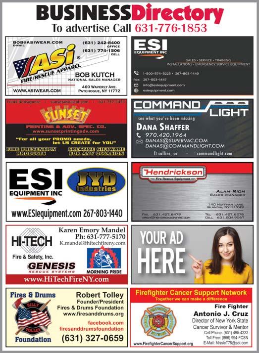Columnists: Bruce Johnson, John Salka COPYRIGHT2024, THE FIRE NEWS INC., LONG ISLAND, NEWYORK. ALLRIGHTS RESERVED FOR MORE INFORMATION, (631) 776-0500 Advertising: Ext3, Editorial: Ext 281 or LI@firenews.com Reaching 17 States with 14 Editions Long Island, New York, New Jersey, Delaware, Connecticut, Maine, Massachusetts, New Hampshire, Rhode Island, Vermont, Kentucky, Maryland, North Carolina, Ohio, Pennsylvania, S. Carolina, Virginia, Washington DC, West Virginia, and Wildwood, NJ Proud Member Of: Letters to the Editor, byline articles, and columns represent the opinions of the writers and photographers and are not necessarily the views of the Fire News. We reserve the right to edit all of the above. We are not responsible for errors in advertisements beyond the cost of advertising space. Copy submitted is subject to editing for space requirements. The placing of an advertisement in this publication does not constitute endorsement. Contents are copyrighted. Editorial and advertising copy cannot be reproduced without written permission from the publisher. Fire News is published monthly by Fire News Inc, with corporate offices at 146 South Country Road, Bellport, NY11713. FireNews.com Fire News, May 2024, Page 3