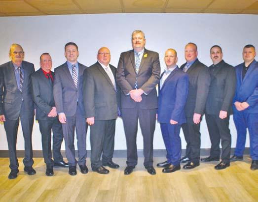 The Brighton VolunteerFire Company, located in Tonawanda, was proud to award President and past-Chief, Shawn Tracey (second from the left) with the 2023 Chief’s Award at the annual installation of officers dinneron January 27, 2024. In March 2023, Shawn’s uncle was in desperate need of a livertransplant. Shawn immediately started preparing fororgan donation and soon donated 70 percent of his liver. Shawn’s selfless act saved his uncle’s life. In addition to ourown award, Shawn was also given the Fire Service Award forhis 40 years of service by the Erie County VolunteerFirefighters Association. Pictured, from left, are his brother, past-Chief Chris, Shawn, and Shawn’s two sons, Shamus and Evan. All are active members of the fire company.