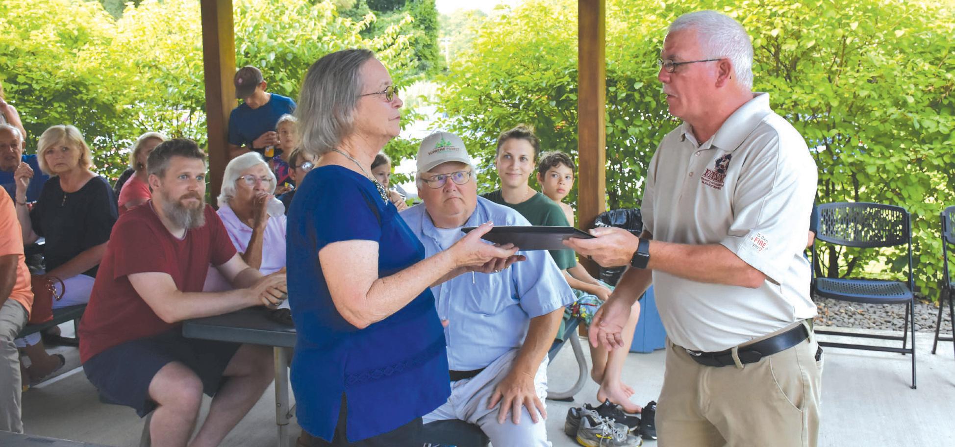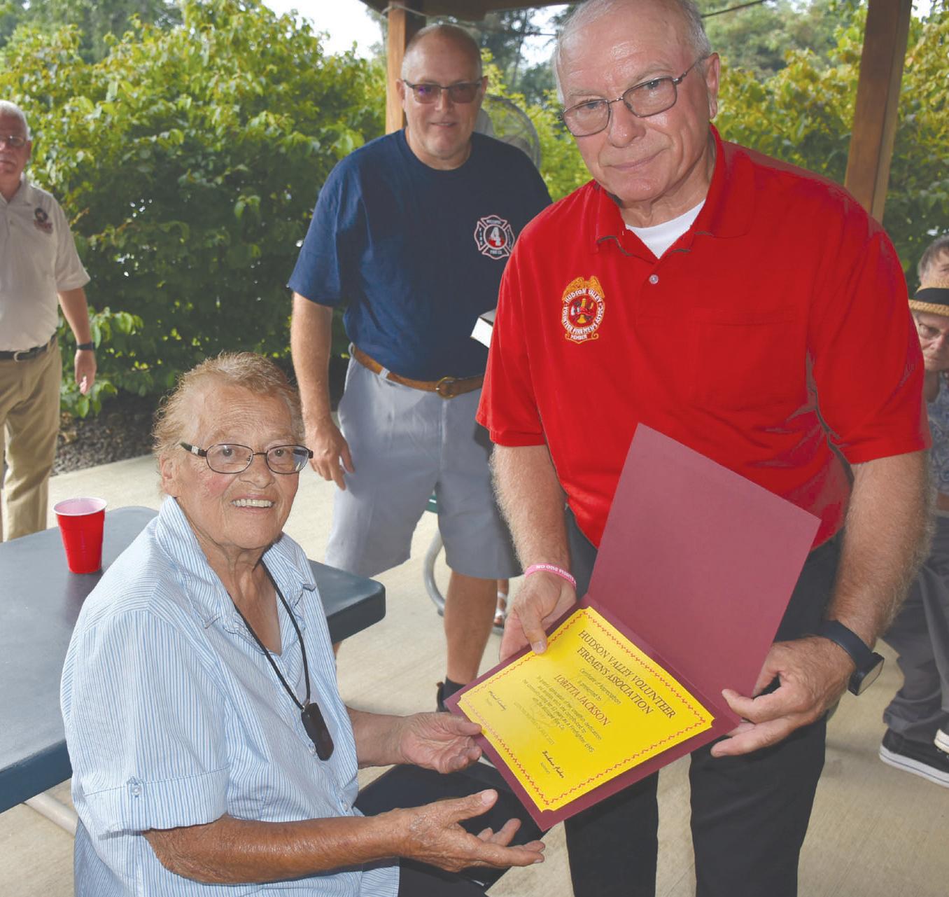 On July 29, 2023, the Wiccopee Fire Company held theirannual family clam bake. This yearwas special because the company recognized 10 of theirmembers who reached milestones in theircompany. The following members were recognized fortheirservice. James Forde, 50 years; Albert (Doc) Foraderstill active; Diane Hickman 53 Auxiliary; Loretta Jackson 53; William McClellan, 50; Scott McKenzie, 53; Gary McKenzie, 63; John McMahon, and Renate Pogge, 50; George Rozbora, 60; George Simpson, 53; and Glenn Scofield, Sr., Honorary 69 years. The following organizations presented certificates to acknowledge these great accomplishments. FANYDirectorDon Farrell, HVVFA1st Vice President Robert Schrader, DCVFAFinancial Secretary Vincent Galvin, DCFFM President Kyle Pottenburgh and Wiccopee President Tom Hussing and Assistant Chief John Ryan presented plaques fortheir great accomplishment. - Fire News photos provided